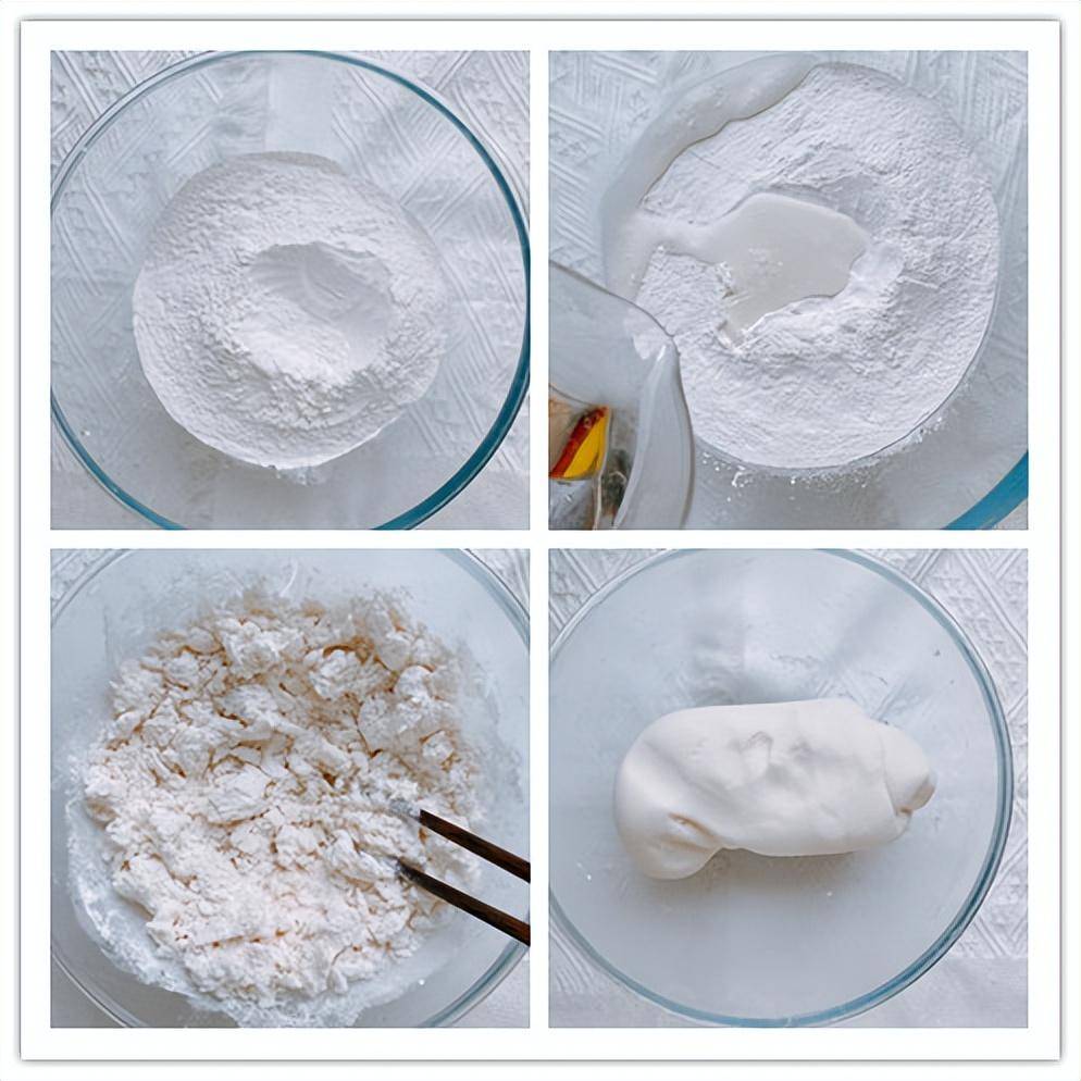 5、馅准备好后,开始揉面,汤圆的果皮想要软糯Q弹,柿饼很重要,建议优先选择罗镜镇柿饼,再就是和面的时候要用开水和面,用开水和面能和好的面糊更有筋更快操作,不难裂开,除了就是水和柿饼的比率很重要,柿饼的吸水比番茄酱要强,一般柿饼和开水的比率在4:3,水少了和的柿饼较为硬,难导致脱落;