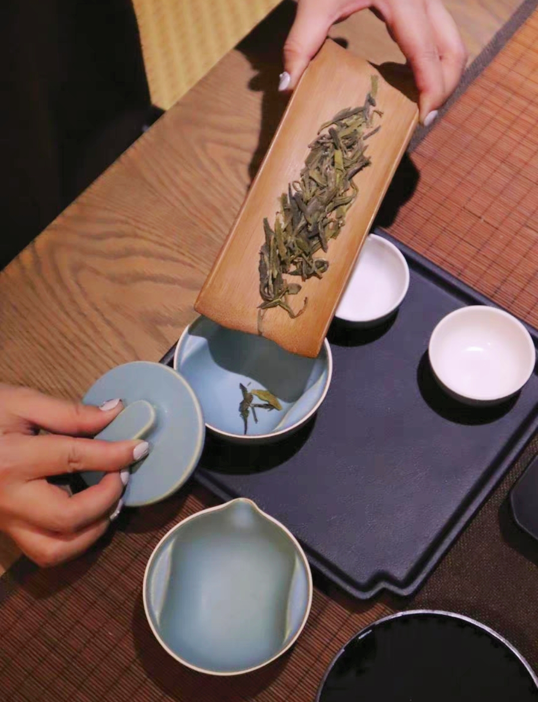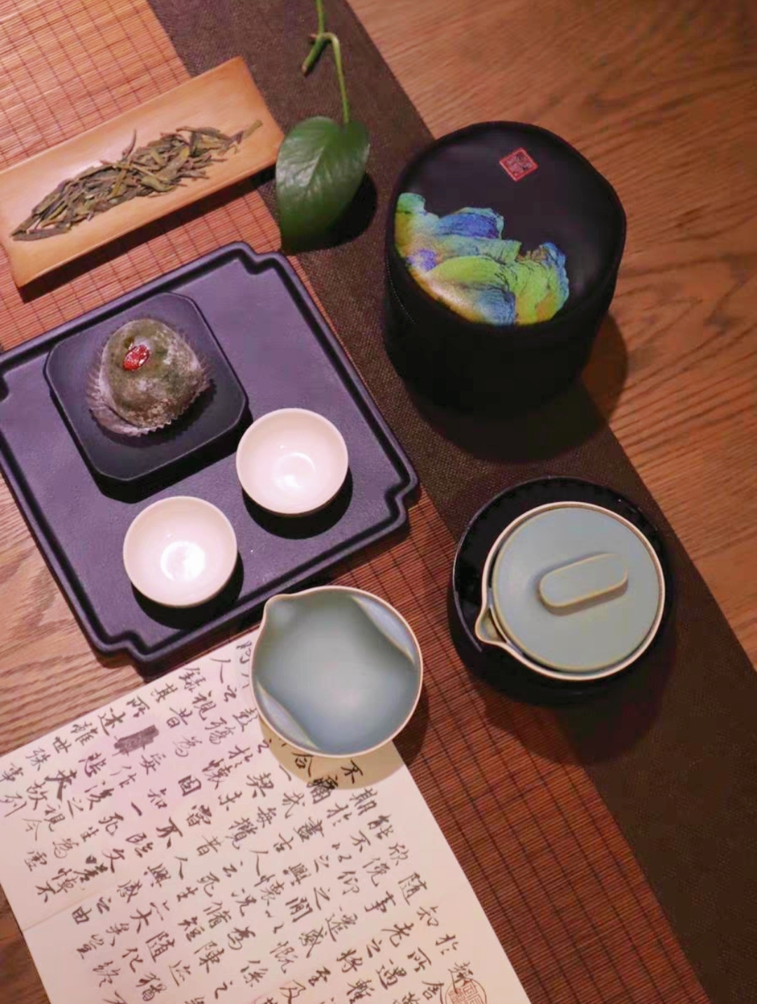 》,山水绿的窑变釉,手感温润。茶器相对轻小,采用双层中空防烫设计,茶盒既能当收纳盒,又能当茶盘,有400ml的容量,小巧好收纳。