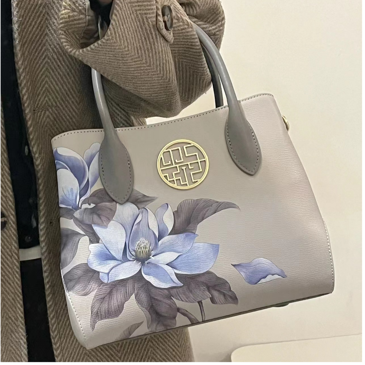 像妈妈那个年纪,背的包包都会以优雅大气为主,天熙家这只包包的设计我就很喜欢,上面的图案用的是国风牡丹花,老妈背着真的特别显气质。