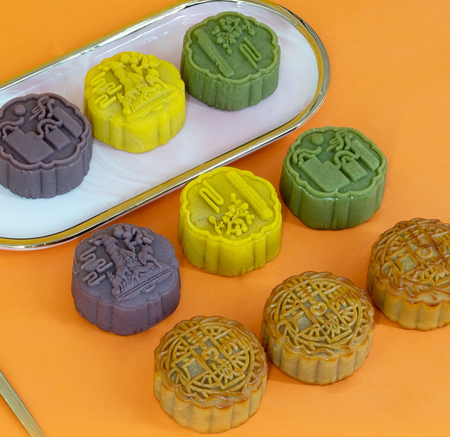麻将酥是有紫薯、咸鸡蛋、龙井三味,元宝酥是凤梨味,柿子酥是干酪咸鸡蛋,除了奶Ource心的月饼。